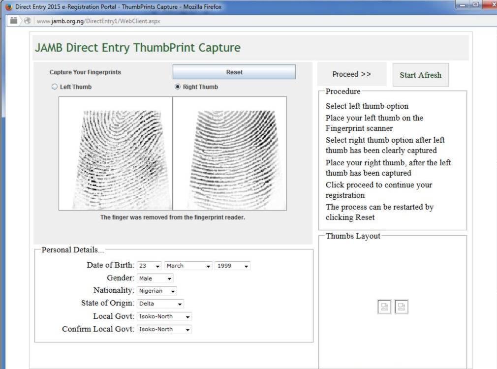4. Capture your left and right finger print thumb, >> fill in