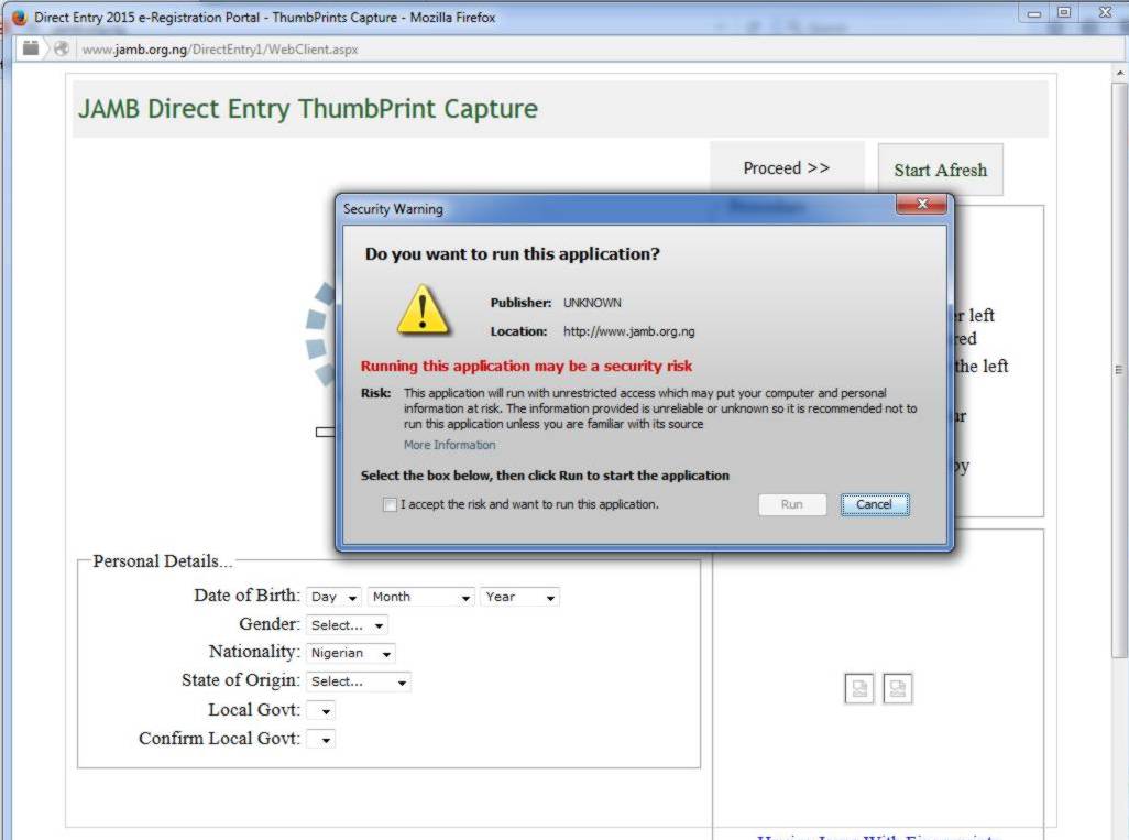3. Check >> I accept the risk and want to run this application,