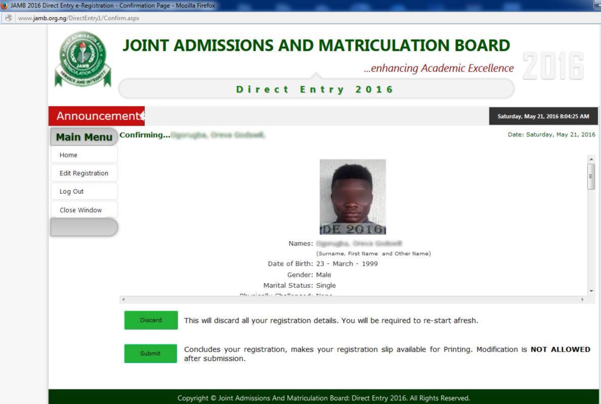 Click on Discard (This will discard all your registration details and
