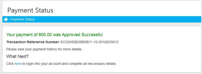 If payment is successful you will be shown this message below